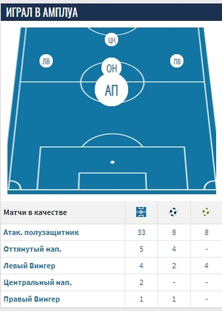 Позиции Мхитаряна в предыдущих сезонах за «Рому»