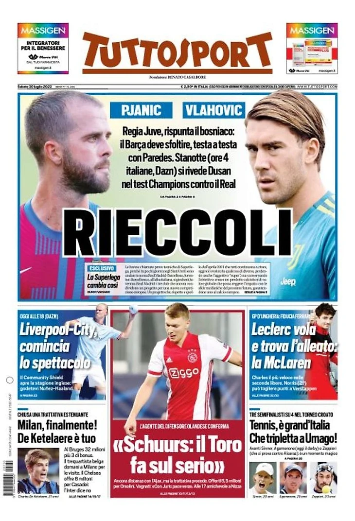 Вот снова они. Заголовки Gazzetta, TuttoSport и Corriere за 30 июля