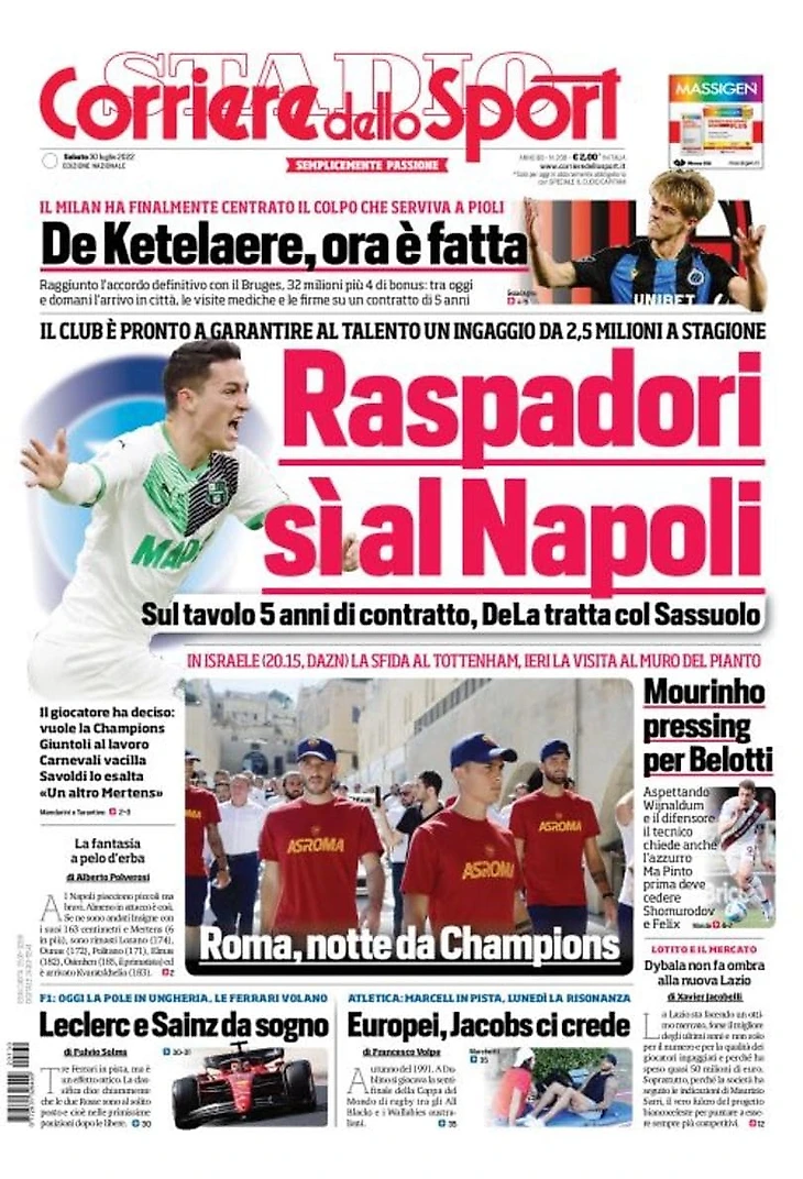 Клуб готов гарантировать таланту зарплату в 2,5 миллиона за сезон. На столе 5-летний контракт, ДеЛа ведёт переговоры с «Сассуоло». Игрок решил: хочет играть в Лиге Чемпионов. Джунтоли за работой, Карневали колеблется, Савольди его хвалит: «Другой Мертенс».