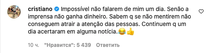 Это не единственный комментарий Криштиану. Он пришел в комментарии сразу нескольких фанатских аккаунтов в соцсетях. И не только он, но и члены его семьи.