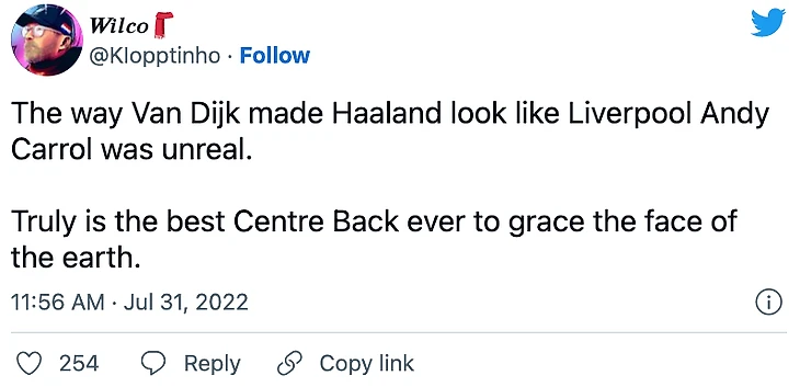 Болельщик №1: «Ван Дейк заставил Холанда выглядеть как Энди Кэрролл. Поистине лучший центральный защитник, когда-либо украшавший лицо земли».