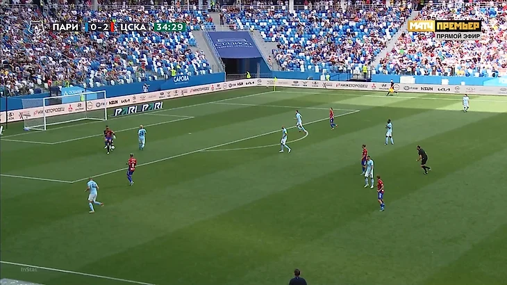 35-я минута. Нигматуллин после очередного привоза от Александрова выбил мяч на прямо на Карраскаля. Удар у колумбийца не получился, но мяч подхватил Обляков – полузащитник попытался перекинуть кипера «Пари НН», но тот сумел выловить мяч.