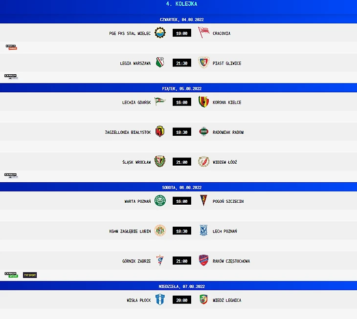 Расписание 4-го тура Экстракласы