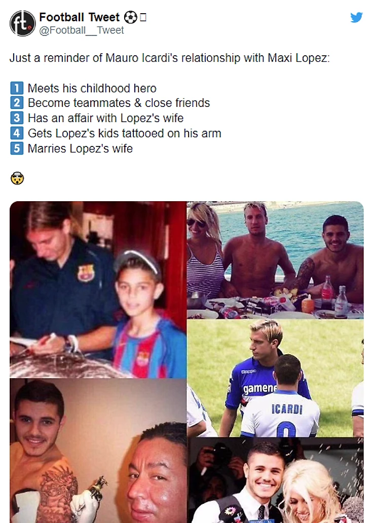 Любовный треугольник «Мауро Икарди, Ванда Нара и Макси Лопес» в какой-то момент потряс мир футбола. Икарди и Лопес были товарищами по команде в «Сампдории», игравшей в Серии А, и по-настоящему дружили.