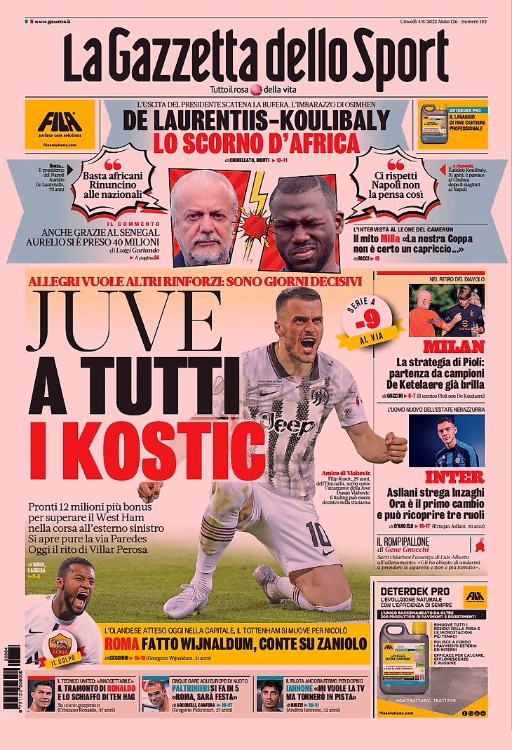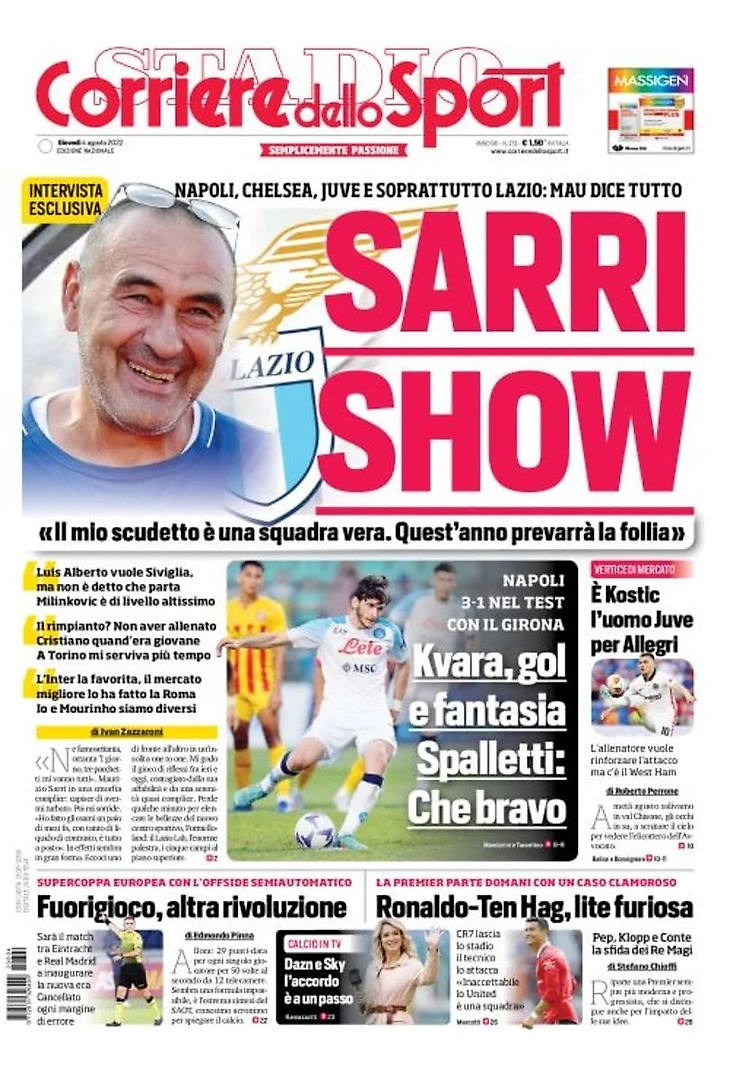 Шоу Сарри. Заголовки Gazzetta, TuttoSport и Corriere за 4 августа