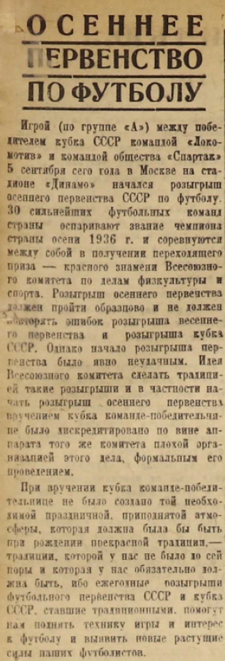 5 сентября 1936 года. Первые матчи осеннего чемпионата СССР прошли в Ленинграде и Москве