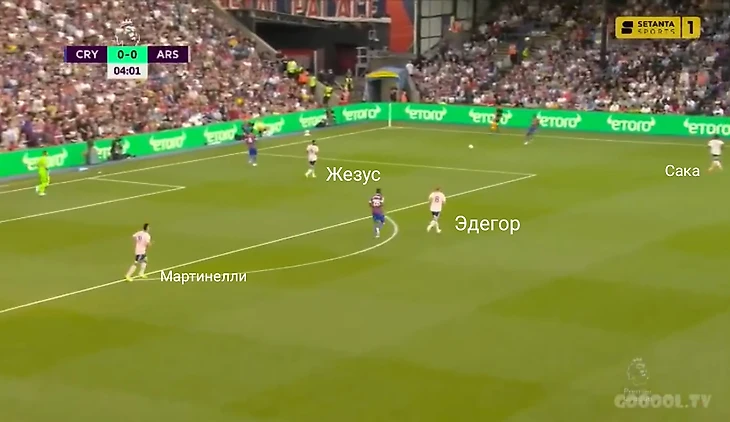Мартинелли в этом матче часто искал мяч и смещался в свободную зону,и играл слева в полуфланге и помогал Жезусу.В это время игрок противоположного фланга Сака,держал ширину в атаке.