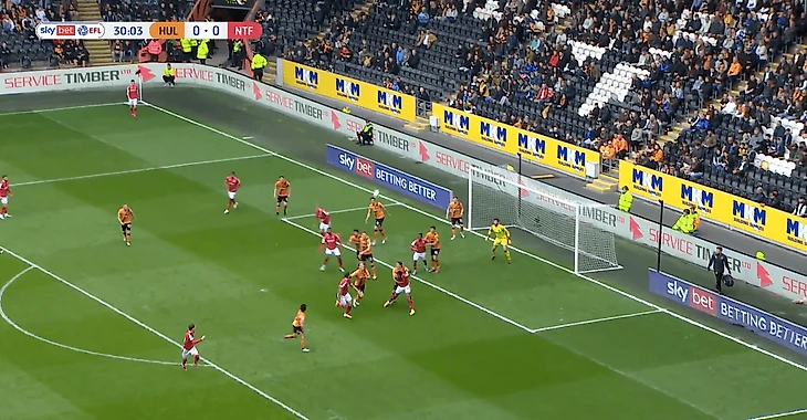 Начнем с удачного. «Ноттингем» использовал классический прием – перегрузил зону во вратарской.