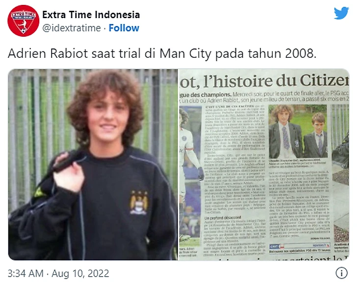 Подростком Адриен Рабьо провел шесть месяцев, играя за академию « Манчестер Сити» - клуб пригласил его переехать из Франции в возрасте 13 лет.