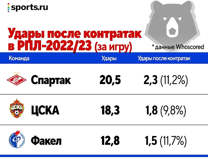 ЦСКА – в топ-3 по ударам после контратак. В быстрых отрывах армейцы регулярно создают явные моменты – большинство из них пока не реализуют (первый тайм с «Пари НН», попадание Чалова в штангу в матче с «Сочи»).