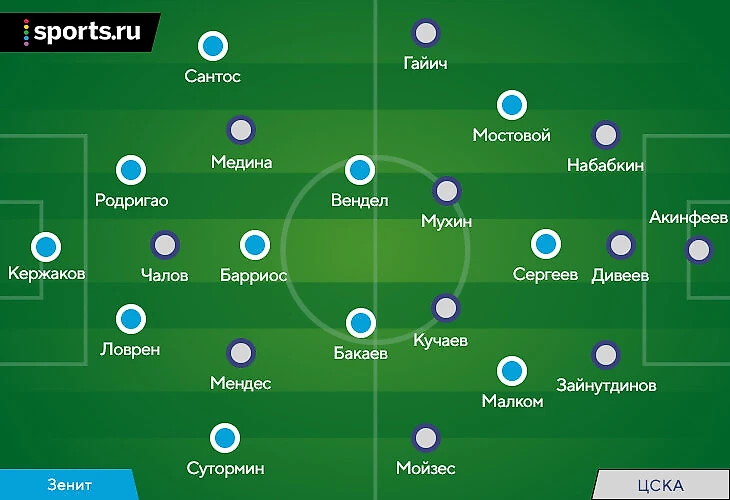 1. «Зенит» сделал несколько вынужденных перестановок: Михаил Кержаков заменил в воротах дисквалифицированного после удаления Даниила Одоевского, а Зелимхан Бакаев вышел вместо травмированного Клаудиньо на позиции восьмерки. Теоретически Дуглас Сантос тоже мог сыграть в полузащите, а Данил Круговой выйти на левый фланг, но Сергей Семак выбрал вариант со сборов – Бакаев уже начинал в середине поля в товарищеском матче с «Црвеной Звездой» (2:1), но тогда в тройке с ним были Вильмар Барриос и Клаудиньо.
