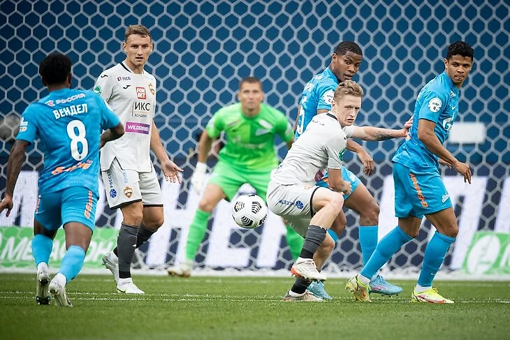 • активное начало от ЦСКА с переходом инициативы к «Зениту». В первом тайме команда Семака доминировала территориально (67,8%-32,2% – владение мячом), по ударам (13-2) и моментам (2 опасных удара после стандартов, шанс Сергеева, штрафной Малкома);