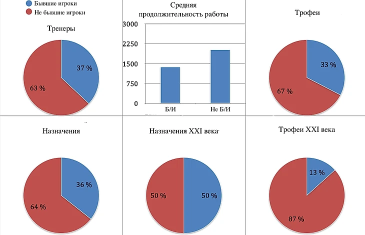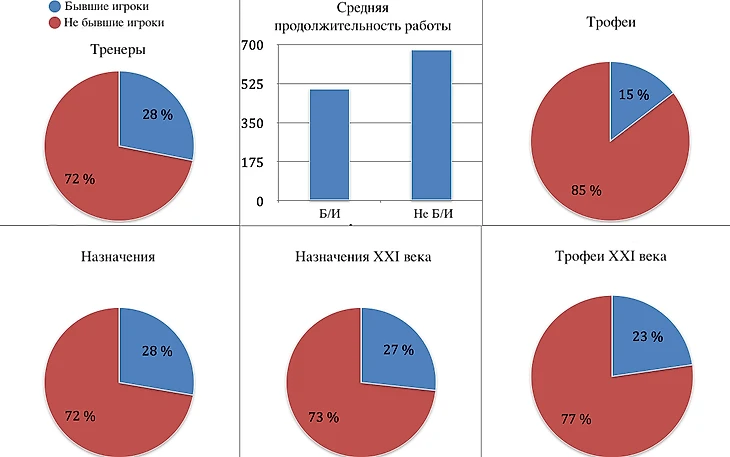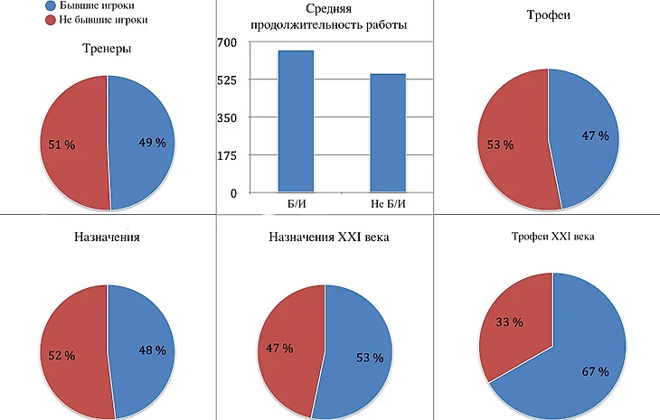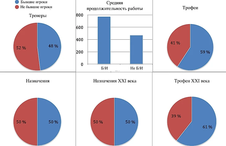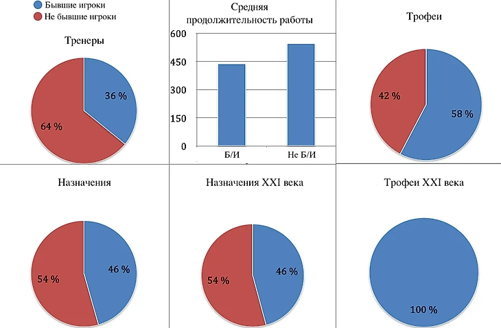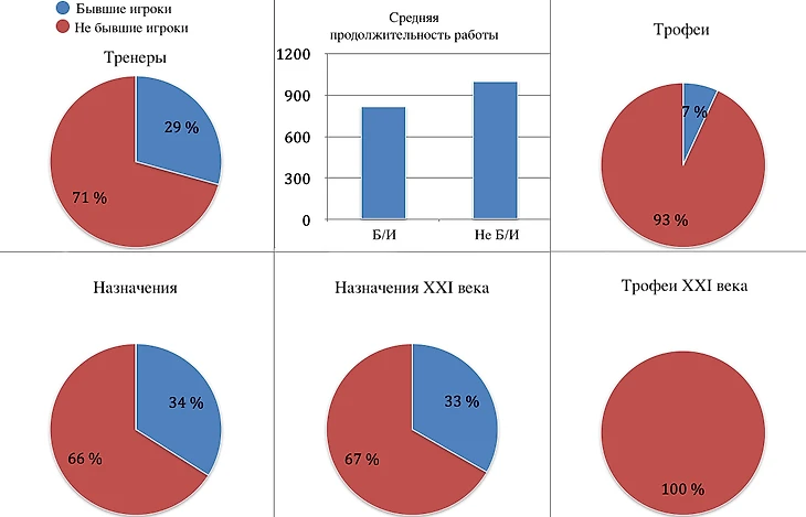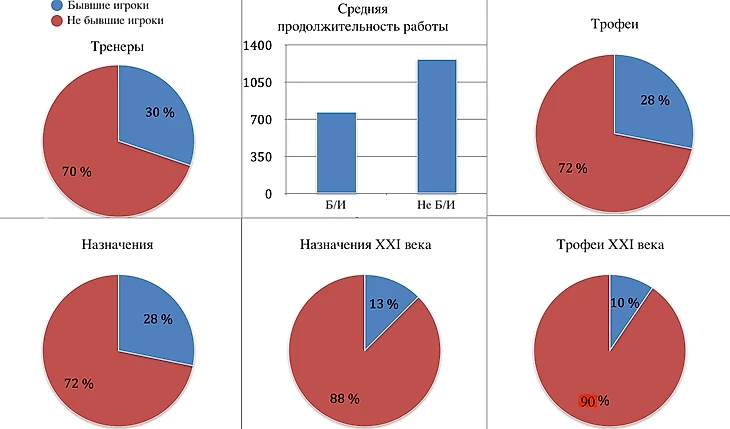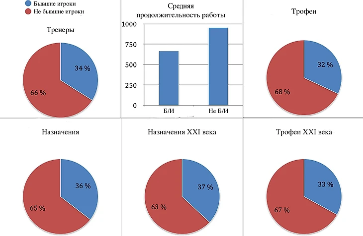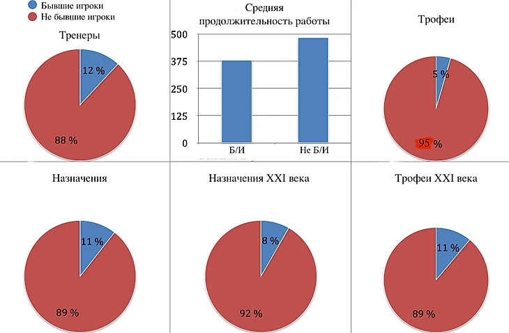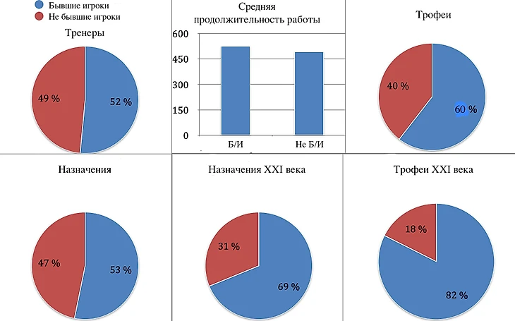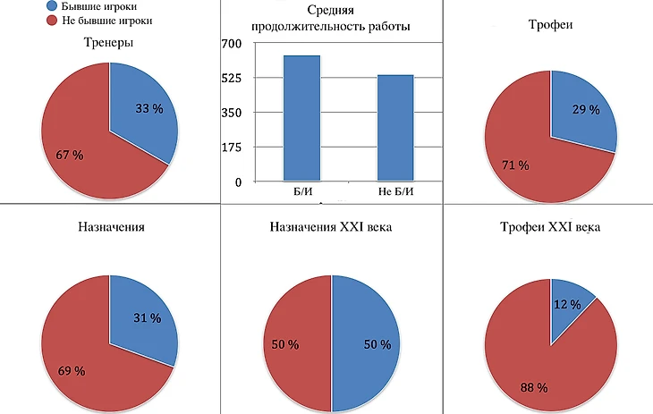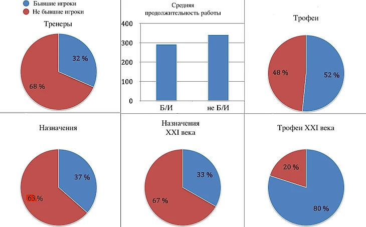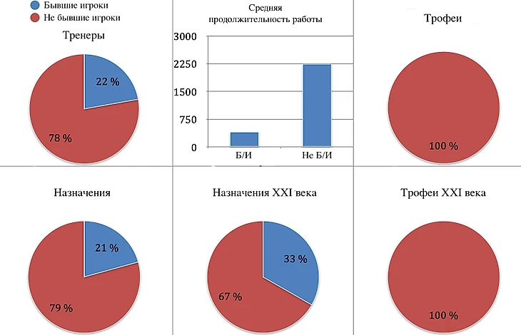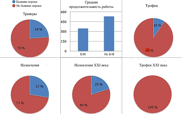 Поэтому и статистика по трофеям нашей эпохи для бывших игроков лучше, чем статистика по всей истории. В остальном же подавляющее преимущество за не бывшими игроками.
