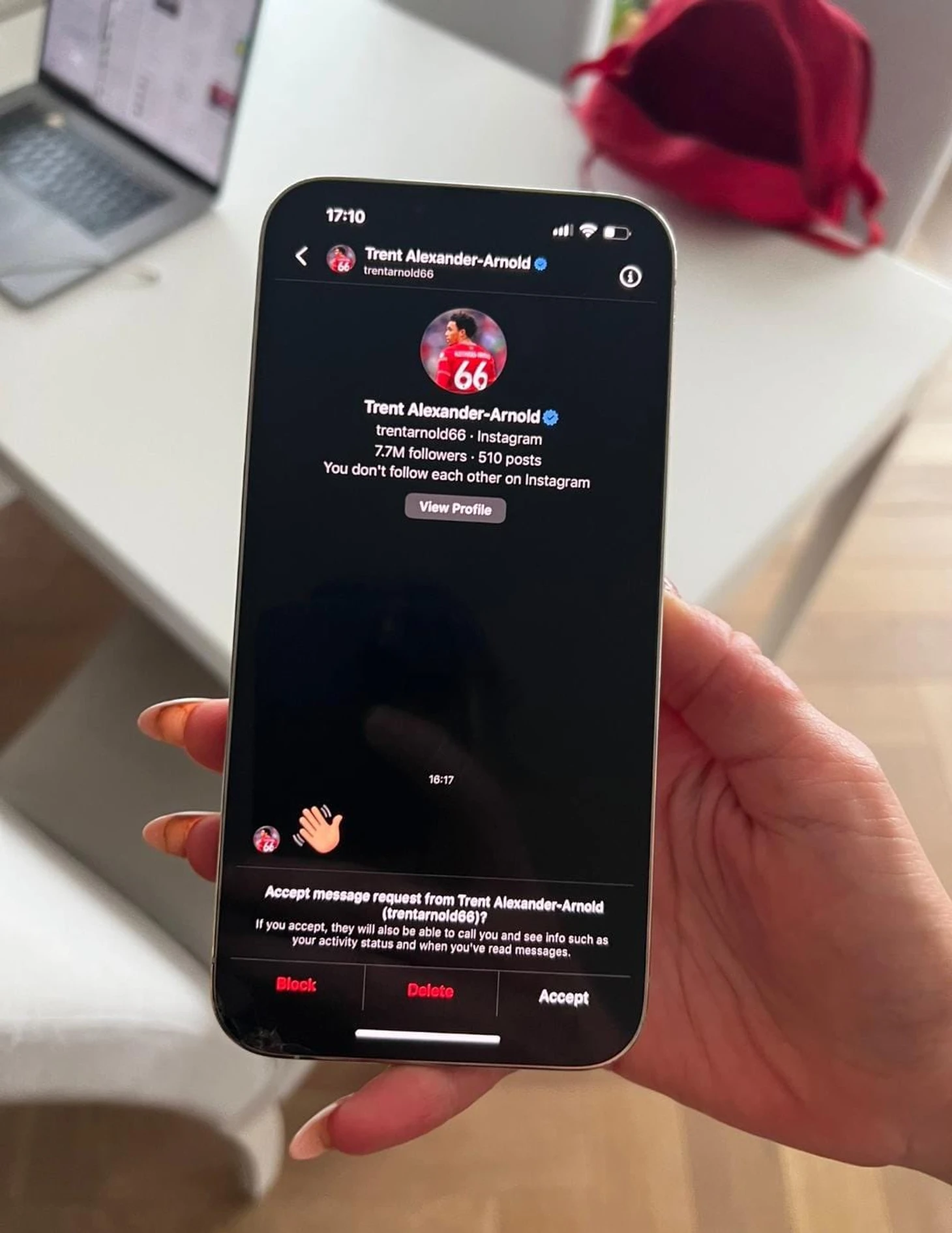 Трент отправил в личные сообщения смайлик-приветствие, и история началась. Вместо взаимности защитник получил огласку – девушка сделала скриншот переписки с футболистом.