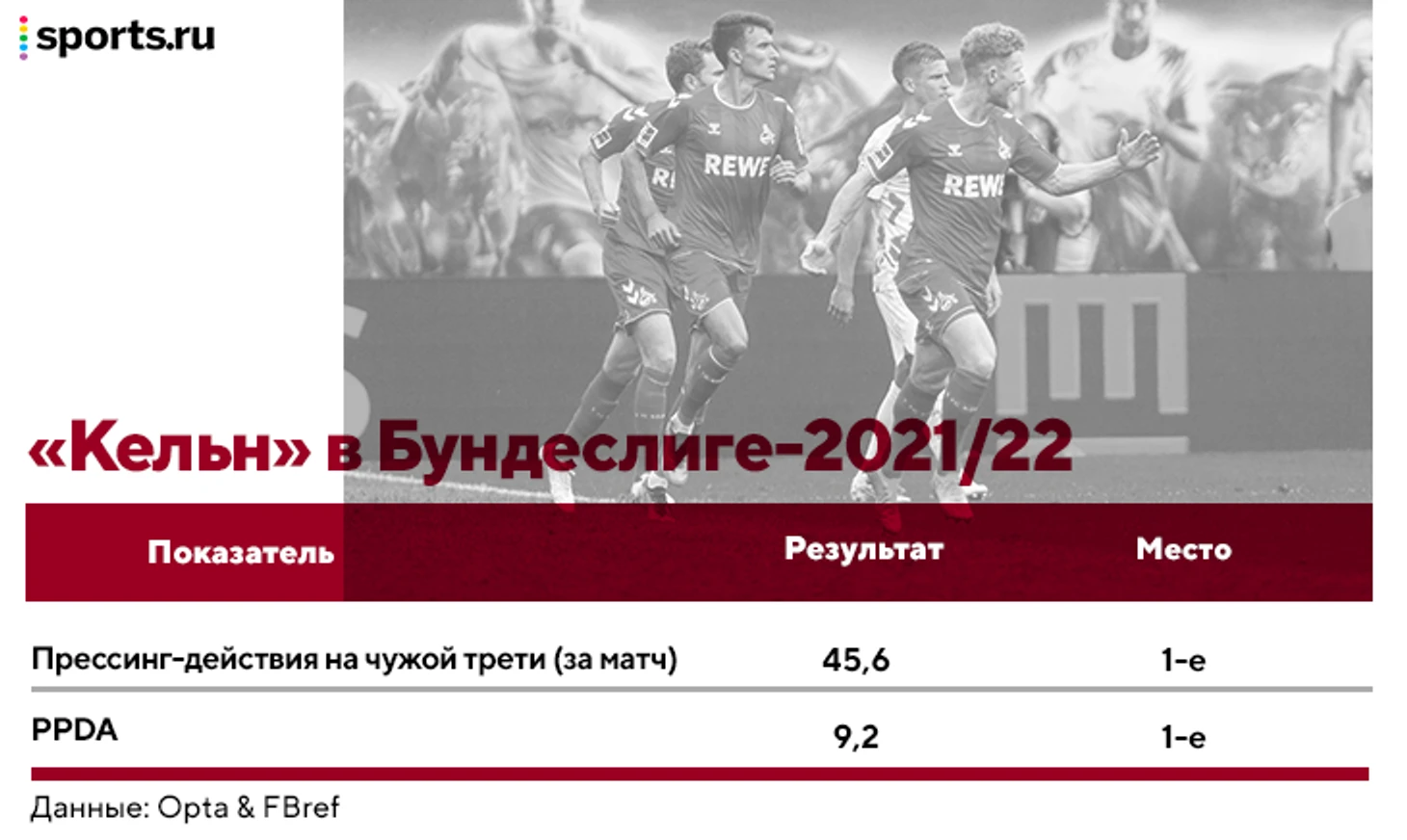 Один из самых интригующих (и, на первый взгляд, спорных) аспектов – внедрение Дзюбы в прессинг-систему «Кельна». Команда Баумгарта встречает соперников смело, высоко и интенсивно. По прессинг-метрикам они в лидерах: