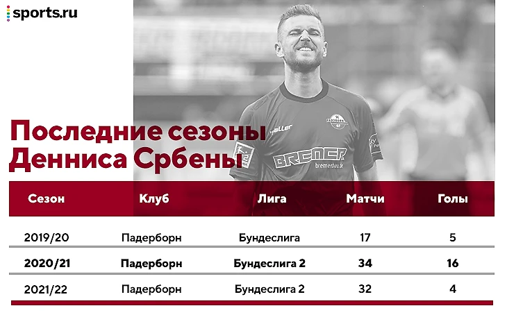 Система «Кельна» идеальна для таких нападающих. Тут на предпочтения Баумгарта классно накладываются и качества других игроков. Но подобные преображения были у тренера и раньше. Например, Деннис Србены в «Падерборне». В таблице выделен совместный сезон, когда на него сделали ставку (после вылета во вторую Бундеслигу). Это единственная вспышка в его карьере, в кампании-2021/22 без Баумгарта форвард скатился к намного более привычным показателям: