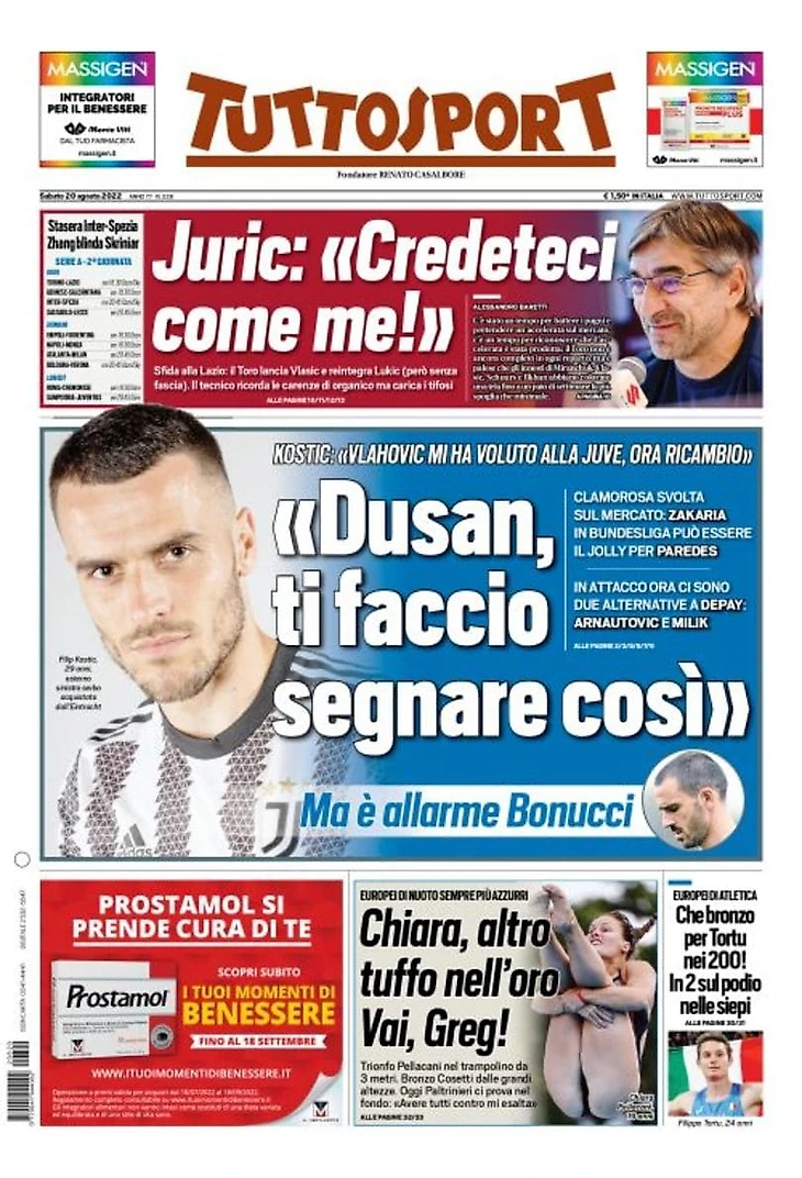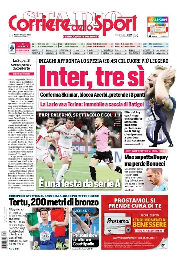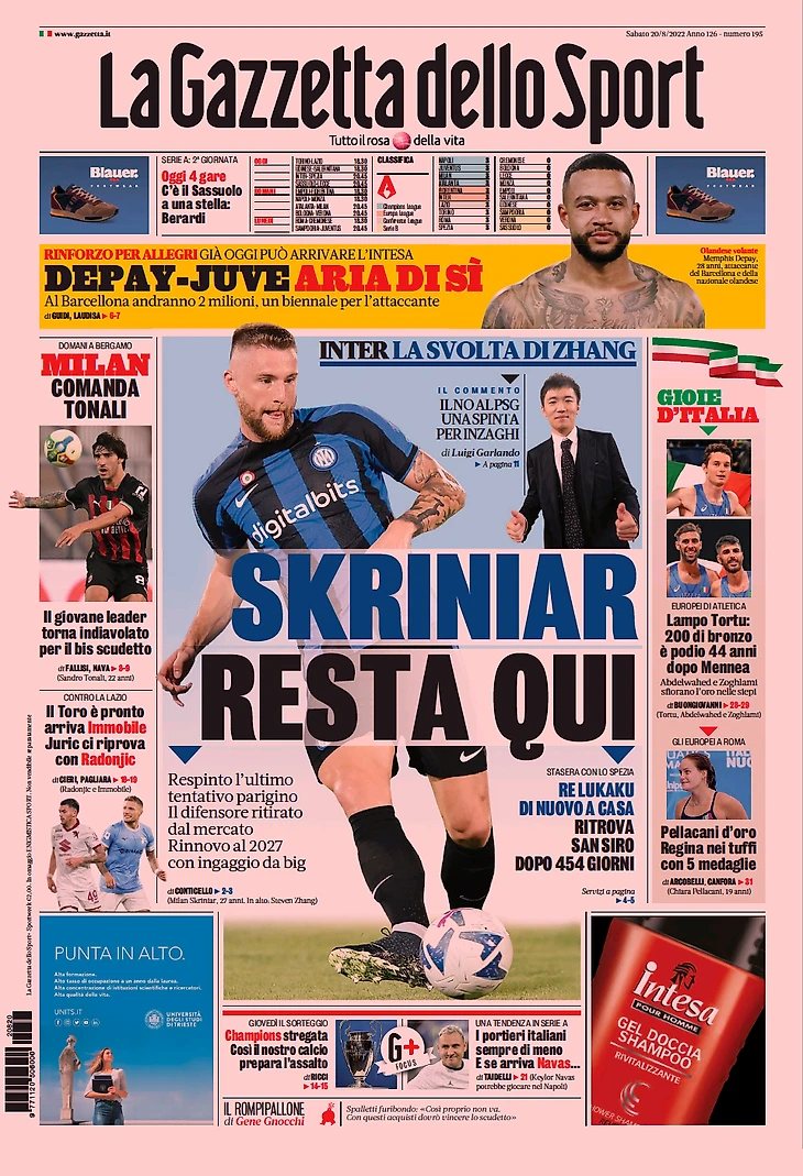Шкриньяр останется здесь. Заголовки Gazzetta, TuttoSport и Corriere за 20 августа