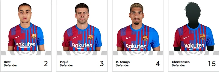 №2 – Даст, №3 – Пике, №4 – Араухо, №15 – Кристенсен, № 18 – Альба, №20 – Роберто, №24 – Гарсия, №28 – Бальде