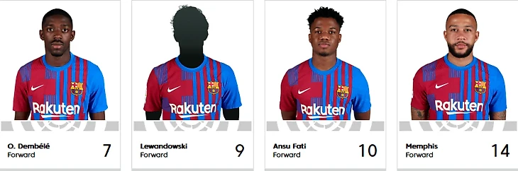 №7 – Дембеле, №9 – Левандовски, №10 – Фати, №14 – Мемфис, №17 – Обамеянг, №22 – Рафинья