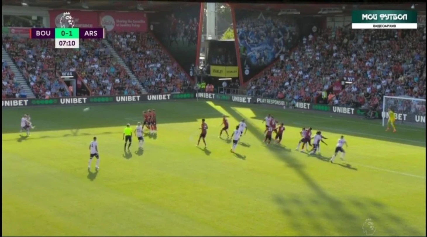 2. Мяч идёт во фланг. И игроки Арсенала замыкают соперника во фланге, разбирая всех возможных адресатов.