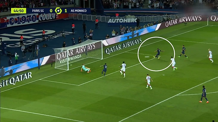 С этим бегунком происходит полный хаос. Он убивает командную игру ровно на столько, чтоб единственным способом забить были забегания на скорости, а единственным адресатом забросов был Мбаппе. И судя по игре с Монако, Галатье вмешаться в этот процесс не разрешают.