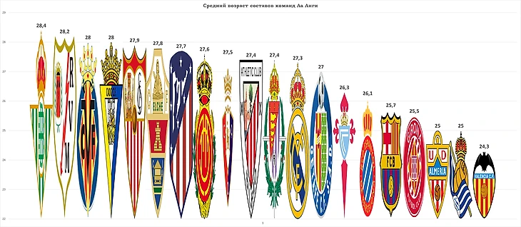 И стар и млад. Самая лучшая диаграмма о среднем возрасте составов команд-участниц Чемпионата Испании