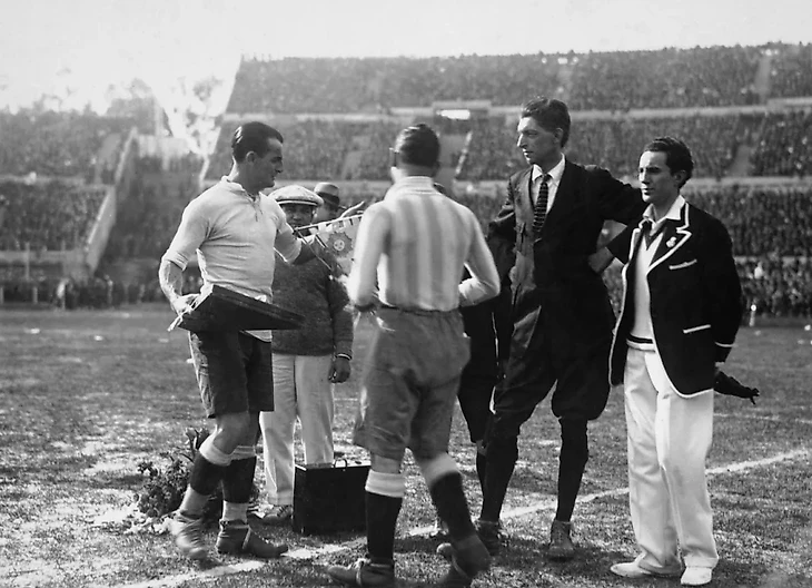 Первые футбольные вымпелы появились в начале XX века и использовались исключительно для обмена капитанами в память о проведенной встрече. К первому чемпионату мира 1930 года эта традиция укоренилась во многих уголках земного шара и широко применялась на внутренних и международных соревнованиях. Оформлению вымпелов уделялось большое внимание: на них изображали не только логотип, название команды и год ее основания, но и дату, город проведения матча, стадион и наименование турнира. До наших дней сохранились редкие экземпляры вымпелов из Испании, Италии, Франции и других европейских стран, которые выделяются из общей массы внушительным размером, искусной вышивкой и другими атрибутами роскоши, представляя серьезную ценность.