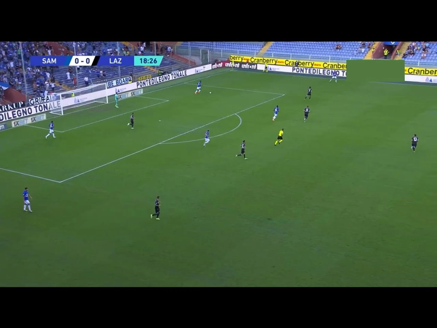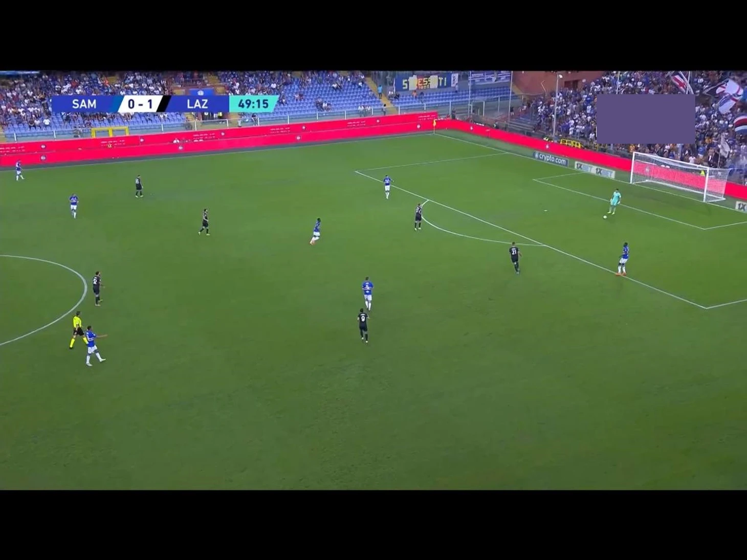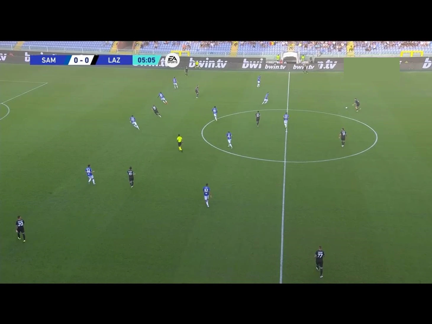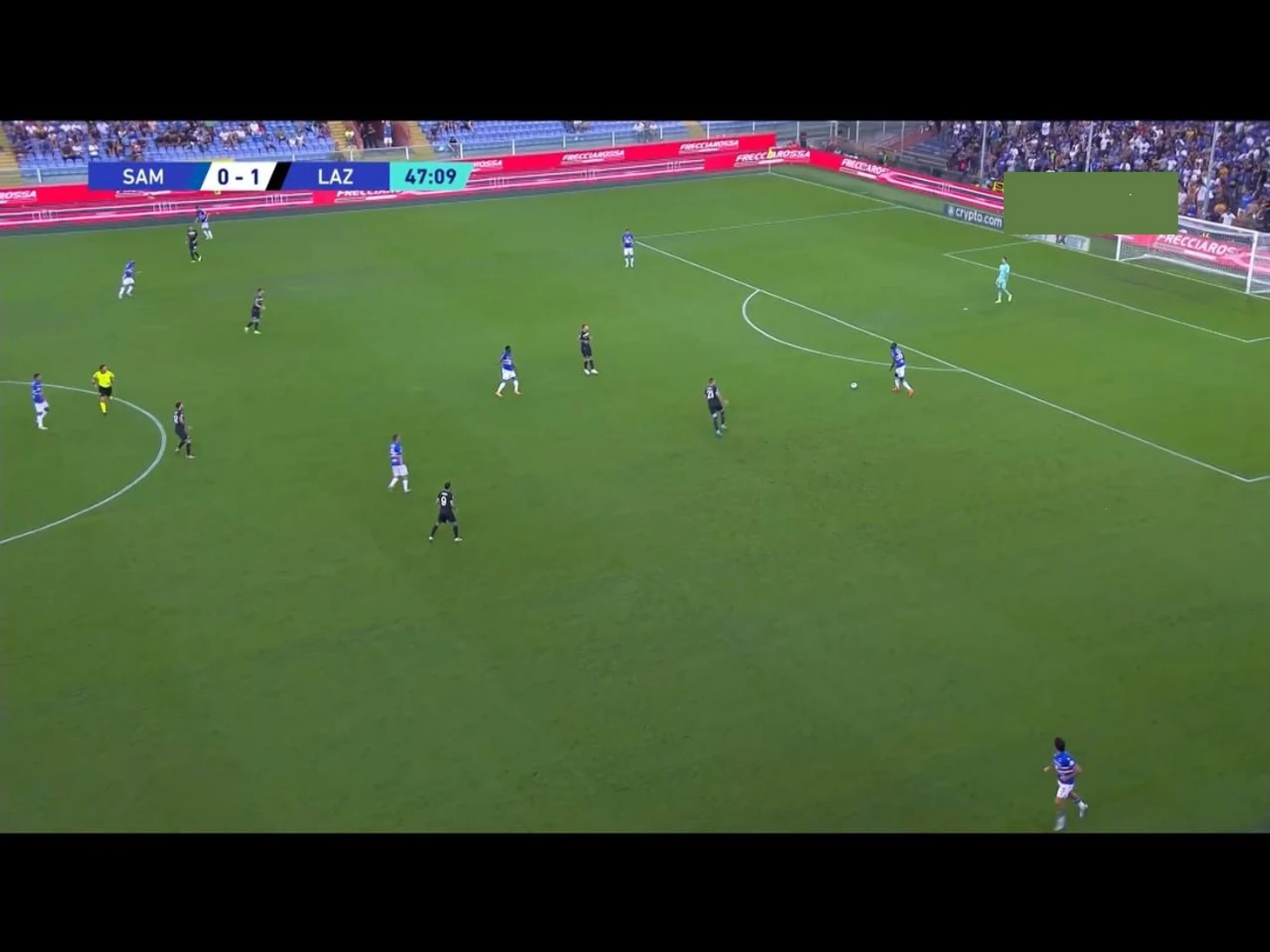 Это очень хороший момент, который нам показывает, как Луис Альберто решил оттянутся поближе к защите и помочь с розыгрышем мяча своей команде. Так он делал несколько раз в этом матче, в основном для того чтобы разыгрывать комбинации, а также разрушать если так можно сказать "прессинг" "Сампдории" которая по сути больше подстраивалась под соперника и позволяла тому диктовать ход игры.