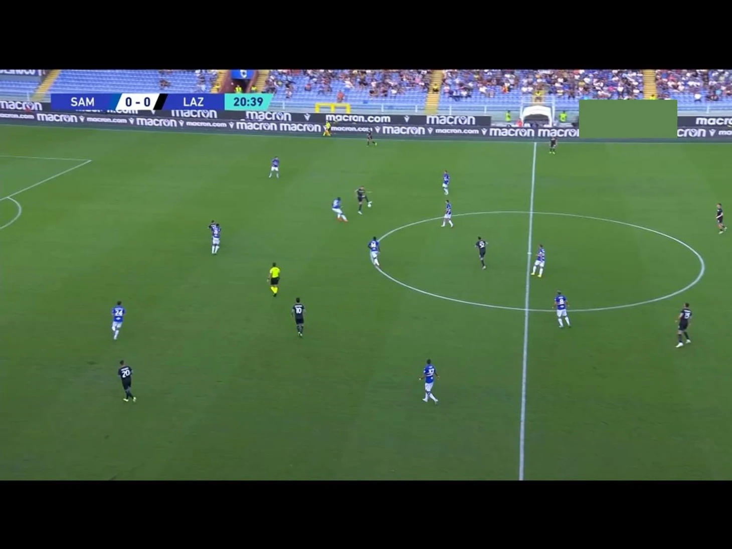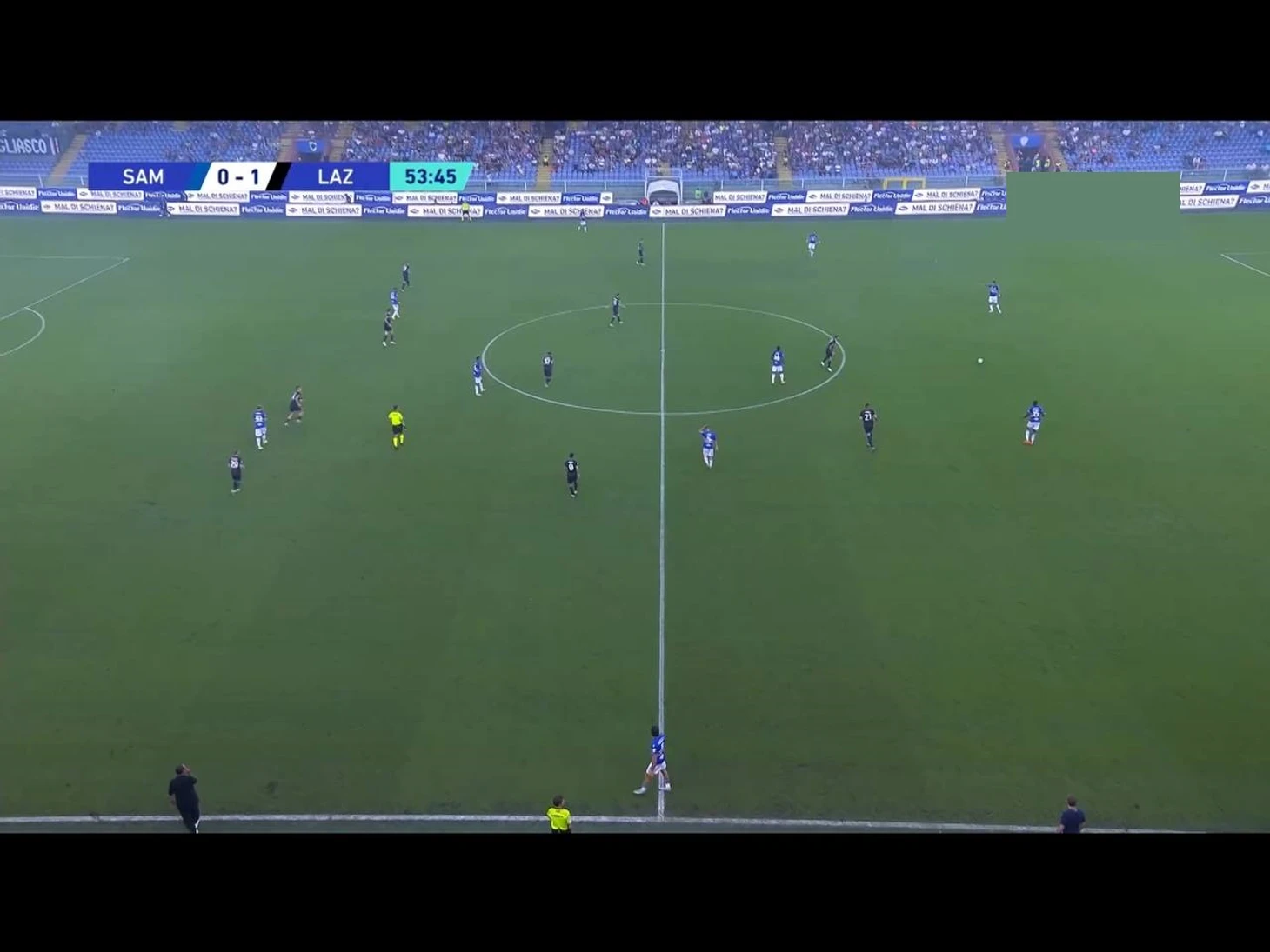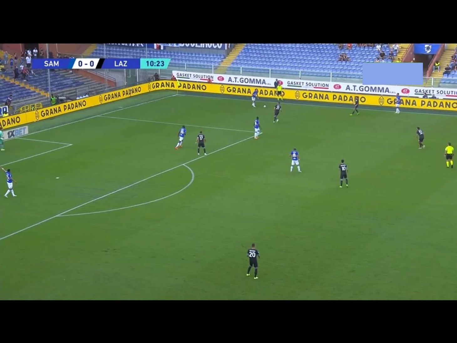 Это очень хороший момент, который нам показывает, как Луис Альберто решил оттянутся поближе к защите и помочь с розыгрышем мяча своей команде. Так он делал несколько раз в этом матче, в основном для того чтобы разыгрывать комбинации, а также разрушать если так можно сказать "прессинг" "Сампдории" которая по сути больше подстраивалась под соперника и позволяла тому диктовать ход игры.