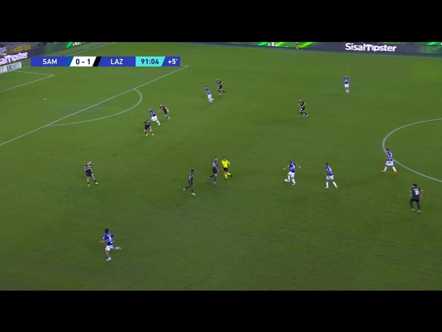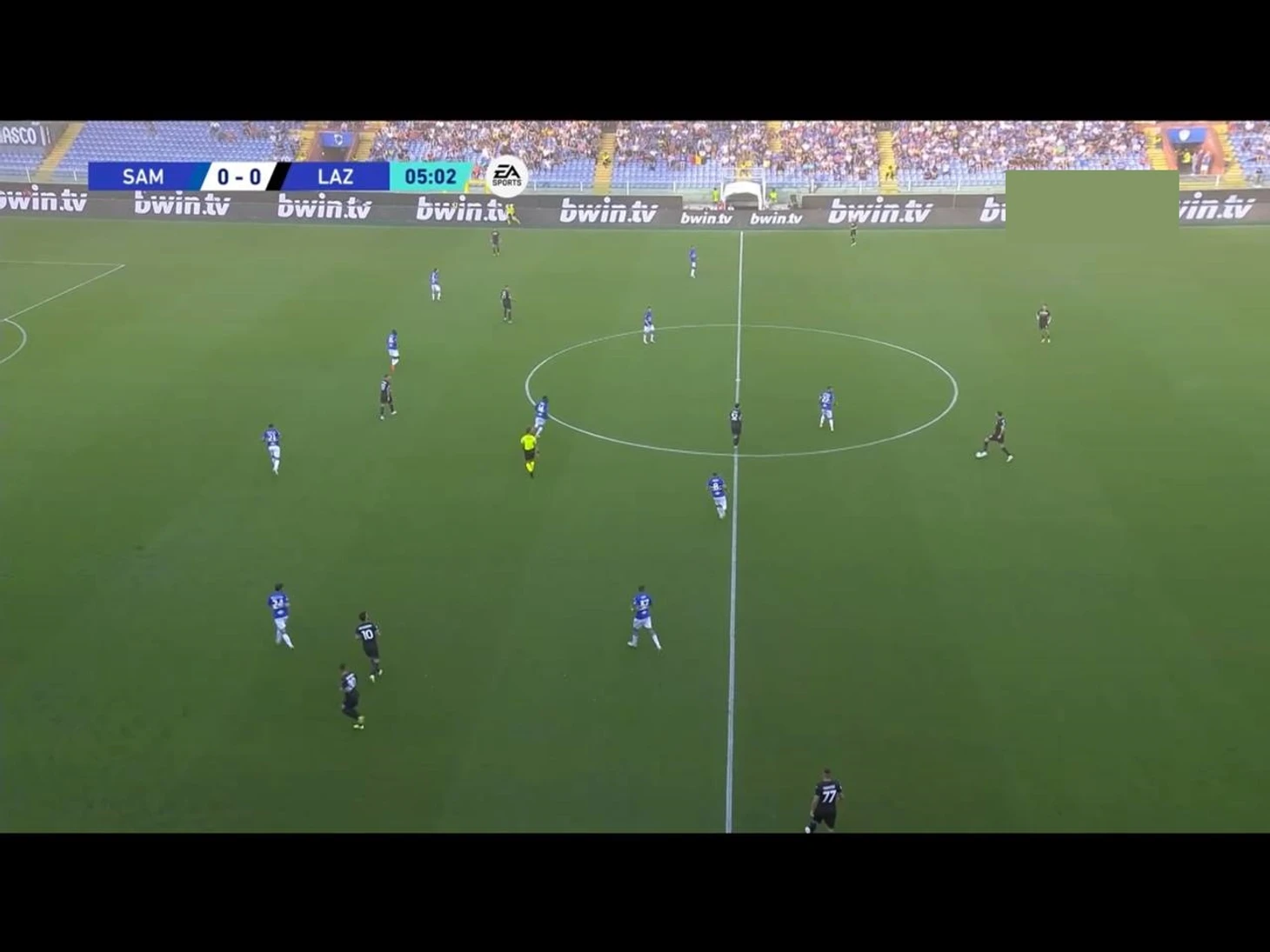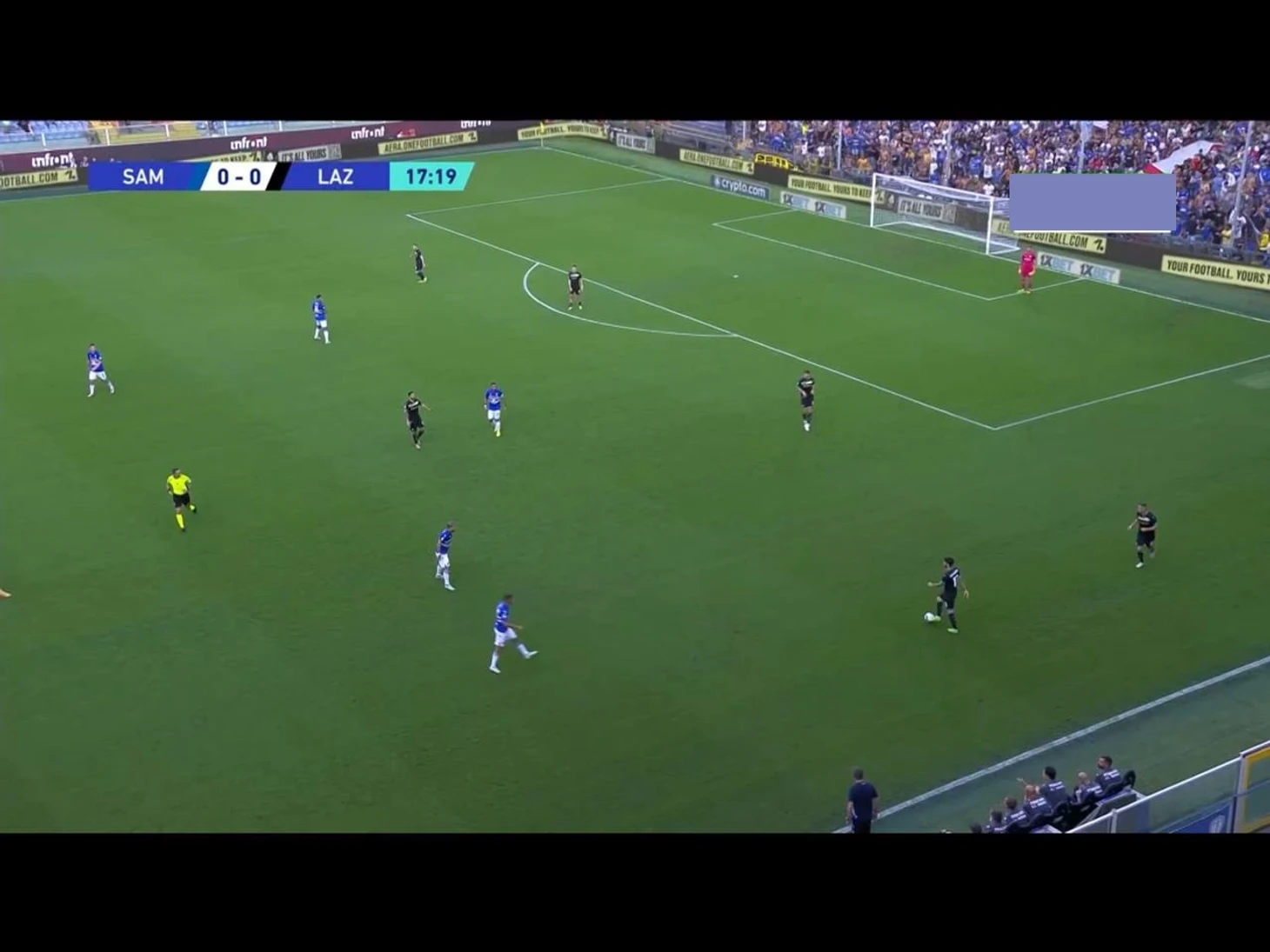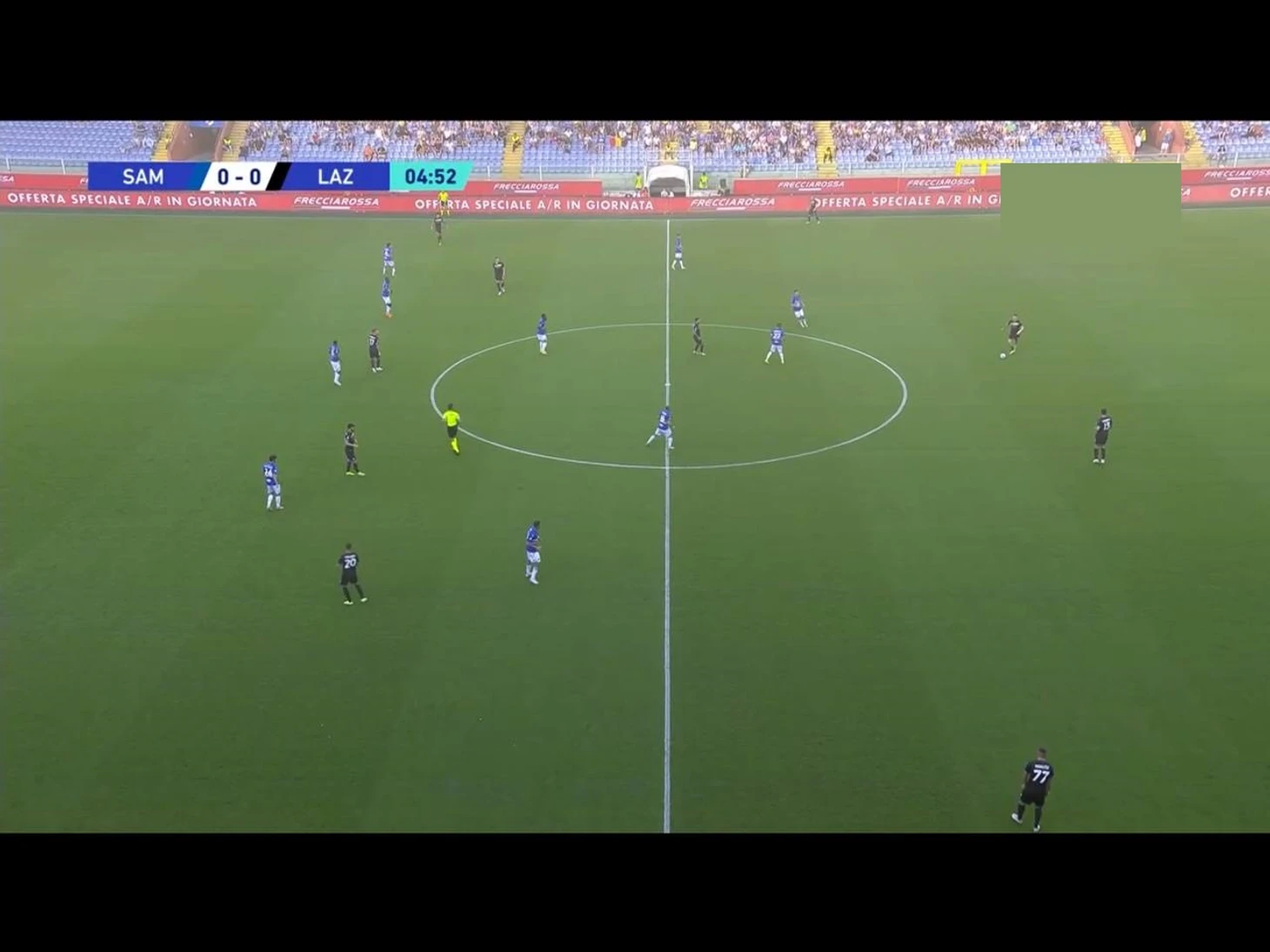 Это очень хороший момент, который нам показывает, как Луис Альберто решил оттянутся поближе к защите и помочь с розыгрышем мяча своей команде. Так он делал несколько раз в этом матче, в основном для того чтобы разыгрывать комбинации, а также разрушать если так можно сказать "прессинг" "Сампдории" которая по сути больше подстраивалась под соперника и позволяла тому диктовать ход игры.