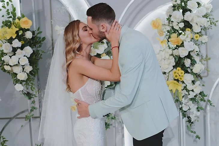 Ребята вместе со школьной скамьи, Алина ездила за возлюбленным во все аренды, совмещая это с работой детского тренера по гимнастике. Никита и Алина сыграли свадьбу 11 мая прошлого года.