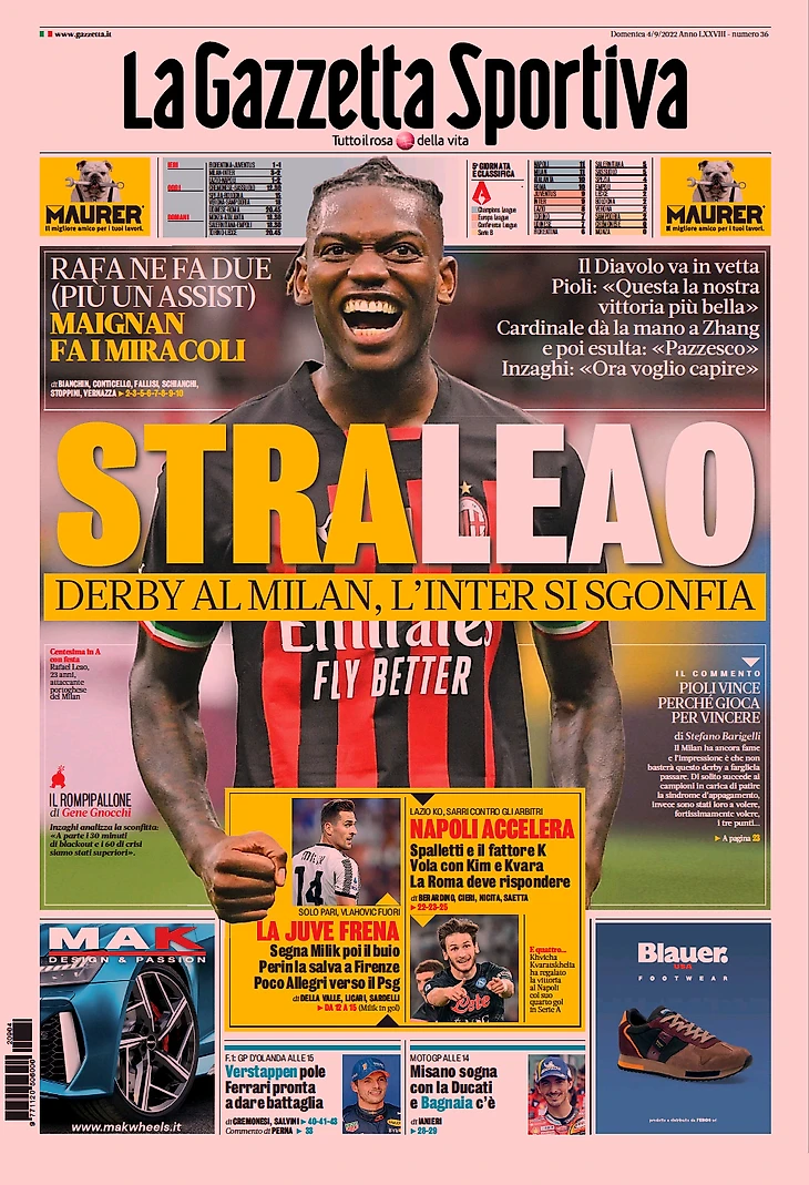 Дерби за «Миланом», «Интер» сдулся. Рафа забил два (плюс ассист), Меньян творил чудеса. «Дьявол» восходит на вершину. Пиоли: «Это наша самая прекрасная победа». Кардинале подал руку Чжэну, затем похвалил: «Сумасшествие». Индзаги: «Теперь хочу разобраться».