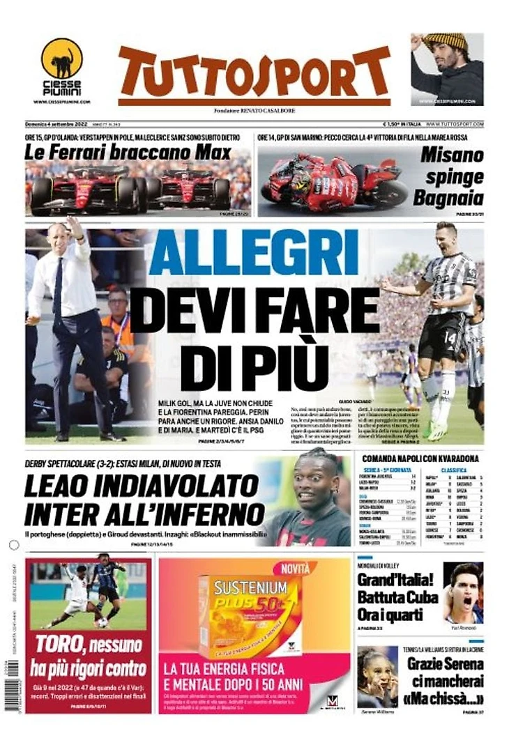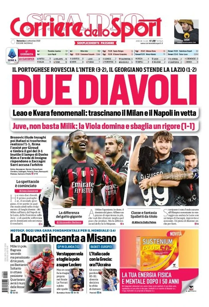 Два Дьявола. Заголовки Gazzetta, TuttoSport и Corriere за 4 сентября