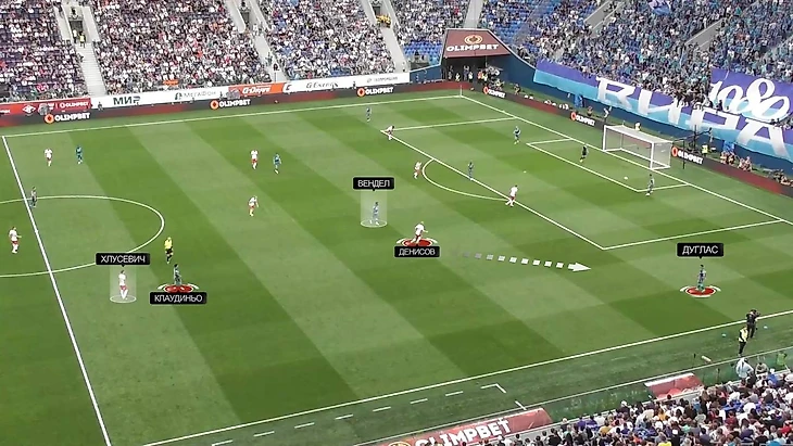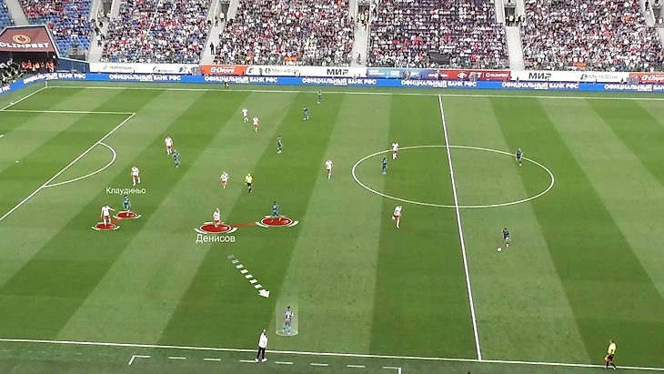 У игрока «Спартака» накопилось лишь четыре единоборства с Клаудиньо за матч. Три из них случились после того, как «Спартак» неудачно начинал позиционные атаки и терял мяч на своей половине. При этом в одном случае Клаудиньо напрямую обокрал Денисова.