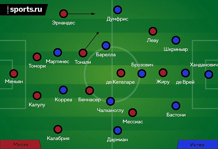 Ханданович, Бастони, де Врей, Шкриньяр, Дармиан, Думфрис, Чалханоглу, Брозович, Барелла, Корреа, Мартинес