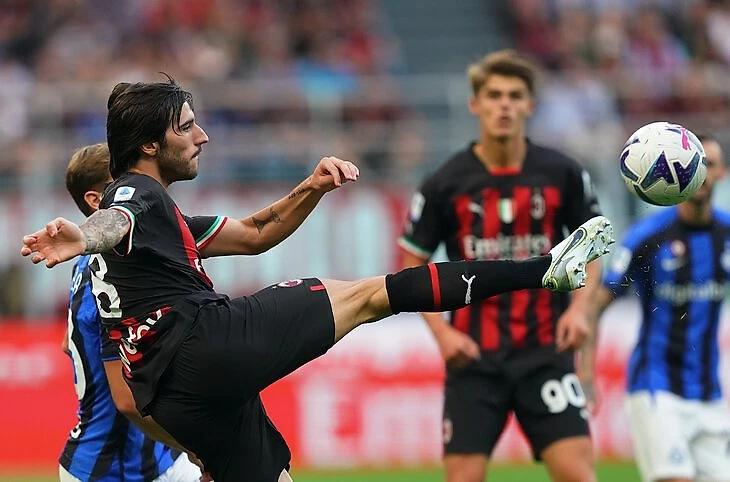 «Милан» очень вариативен при выходе из обороны – Пиоли придумывает персонализированные розыгрыши под каждого соперника. Фишкой против «Интера» стала позиция Сандро Тонали – скрытый левый защитник. «Милан» умно пользовался тем, что «Интер» почти не шел в прессинг.