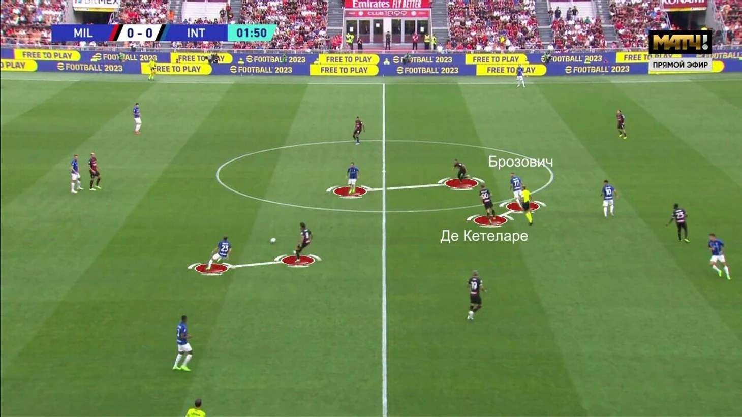 Обратите внимание, где оказывается Де Кетеларе из-за рывка Брозовича. Его партнеры по центру тоже играют персонально.