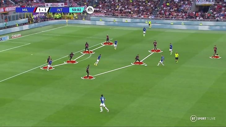 При владении «Милан» путал соперника позицией Тонали (cпускался на место левого защитника)