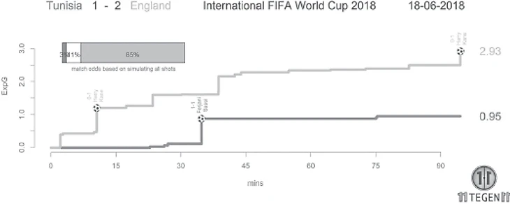 Англии понадобился удар головой на последней минуте от Харри Кейна, чтобы обеспечить себе победу в дебютном матче против Туниса, но все, кто видел весь матч, почувствовали, что победа была вполне заслуженной. Графики ожидаемых голов подтверждают это впечатление: сборная Туниса создала лишь одну крупную возможность забить гол, благодаря сомнительному пенальти после того, как Кайл Уокер был признан виновным в том, что потянул в штрафной Фахреддина Бен Юсефа. Сборная Англии, напротив, создавала моменты на протяжении всей игры, даже если после перерыва они и не играли столь же качественно.