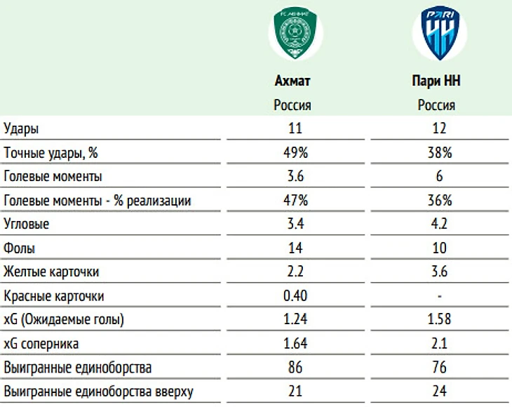 🕮 Факты: ◉ Из четырёх матчей сезона дома «Ахмат» выиграл только один. ◉ «Пари НН» забивает шесть матчей подряд. Это самая длинная действующая результативная серия среди клубов РПЛ.