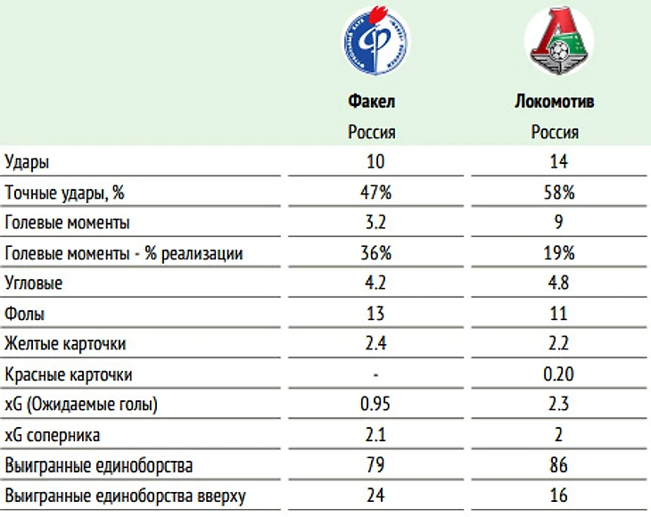 🕮 Факты: ◉ «Факел» не выиграл пока ни одного матча в текущем чемпионате. Его безвыигрышная серия в РПЛ с учётом далекого 2001 года составляет теперь девять игр. ◉ «Локомотив» ни разу не побеждал «Факел» в Воронеже в матчах чемпионатах России. Последнюю победу в этом городе железнодорожники праздновали еще в советские времена – 17 октября 1990 года (2:1). ◉ В три своих предыдущих приезда в Воронеж «Локомотив» не забивал. ◉ «Локомотив», как и «Динамо», еще не проиграл ни одного первого тайма. ◉ Восемь волевых побед было зафиксировано в восьми первых турах чемпионата-2022/2023. При этом половина из них пришлась на матчи с участием «Факела», который вел в счете в пяти играх, но ни разу не смог взять три очка. Воронежцы поделили очки с «Краснодаром» (2:2) и уступили «Ахмату» (1:2), ЦСКА (1:4), «Спартаку» (1:4) и «Нижнему Новгороду» (1:3).