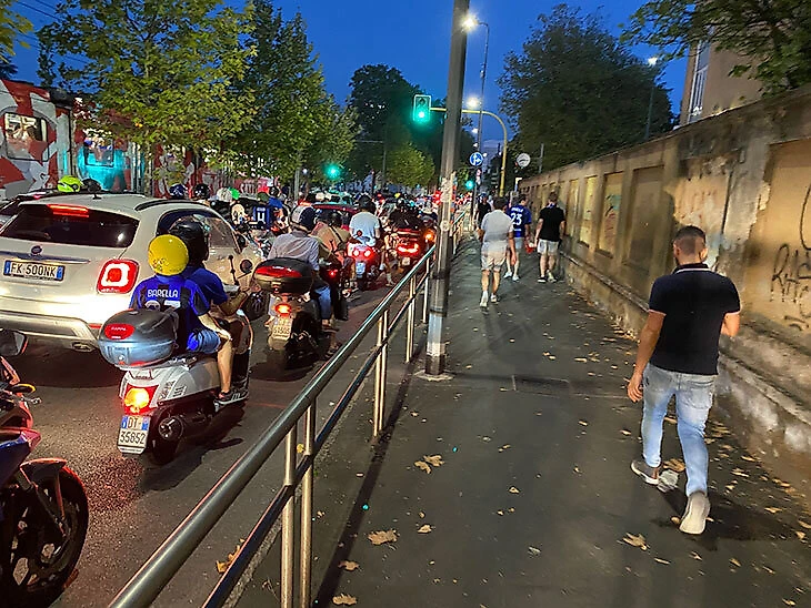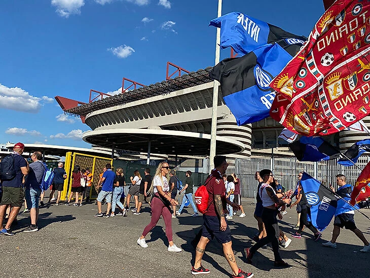 Еще одна дань традиции – ожидание клубных автобусов на площади Анджело Моратти. Десятки людей собираются тут за полтора-два часа до начала матча только ради двух вещей.