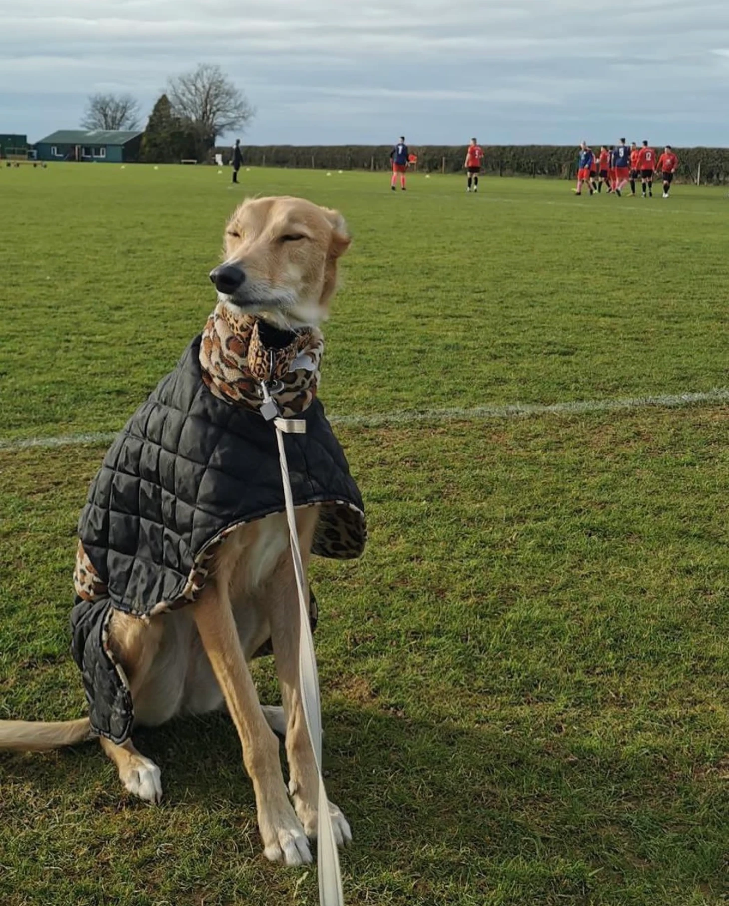 Грейхаунд по кличке Блю на матче «Сент-Айвс Таун» – футбольного клуба из города Сент-Айвс, графство Кембриджшир, Англия. Грейхаунд (английская борзая) – самая быстрая собака в мире. Ранее порода разводилась для охоты на мелкую полевую дичь.