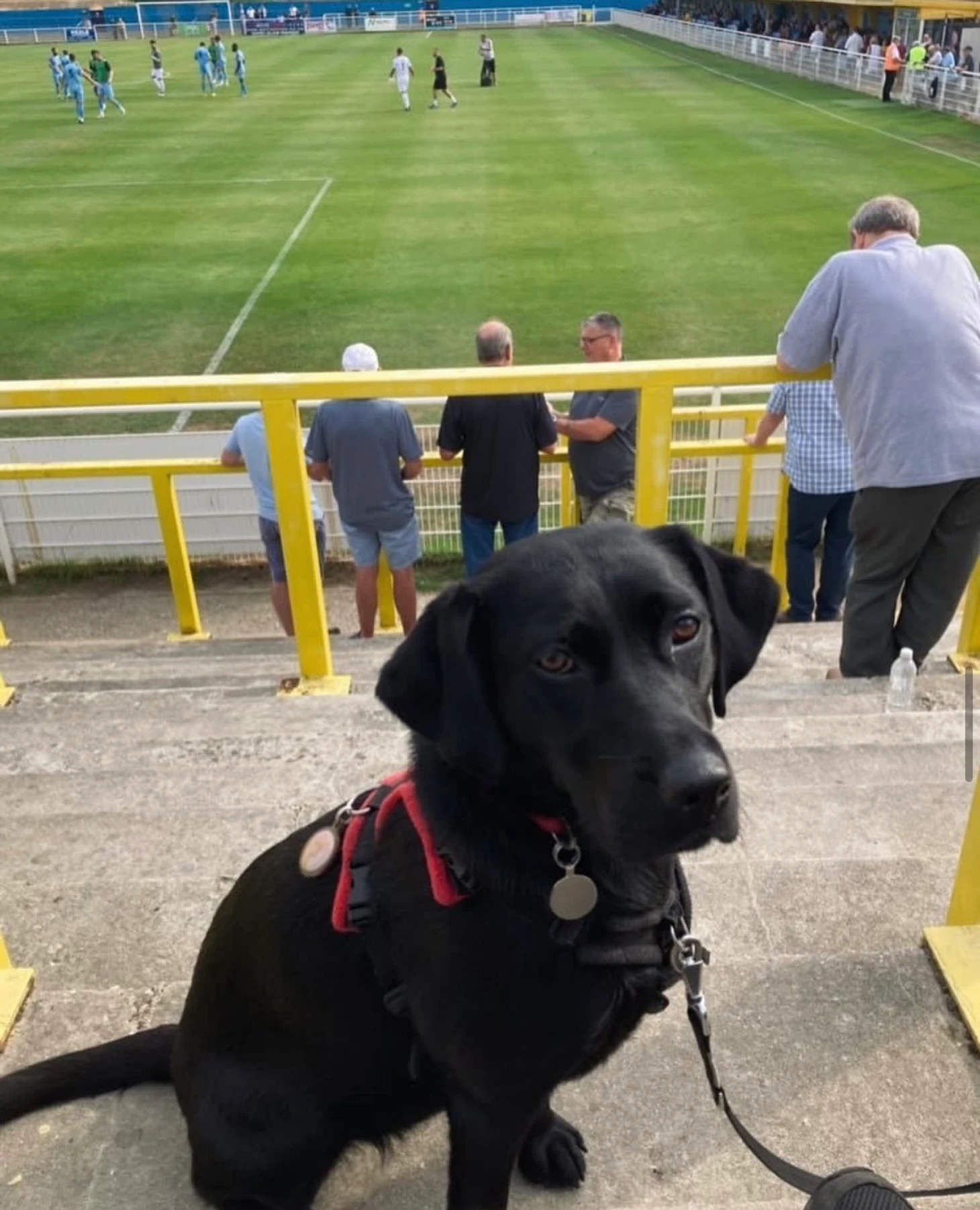 Лабрадор-ретривер Фрея почему-то загрустил на матче родного «Энфилд Таун» – футбольного клуба из города Энфилд, Большой Лондон, Англия. Чуть ли не главной характеристикой лабрадора называют редкостное дружелюбие собак этой породы.