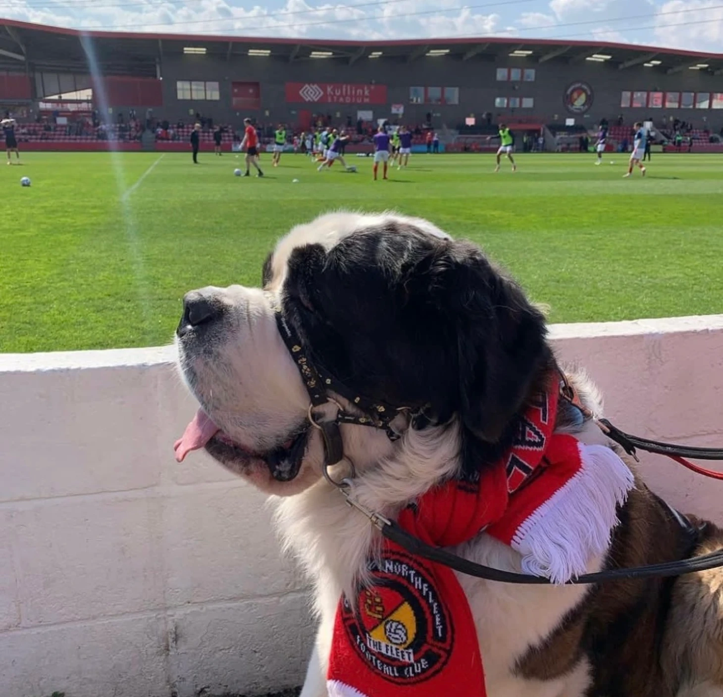 Сенбернар Геркулес поддерживает «Эббсфлит Юнайтед» из города Грейвзенд в графстве Кент.