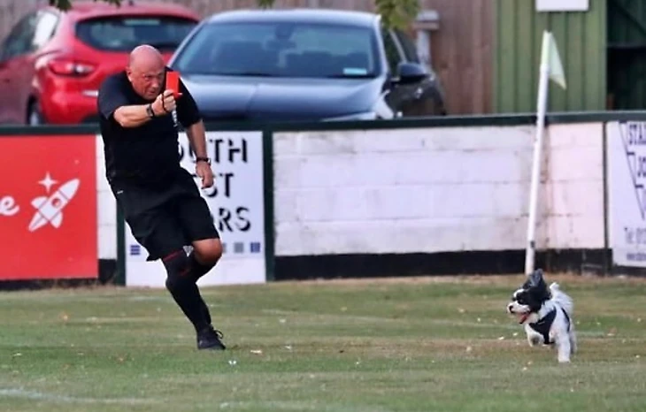 Ну и небольшой бонус. Не всегда наши четвероногие друзья сидят на трибунах смирно – им хочется пошалить. Как видим, в нон-лиге это моментально карается красной карточкой и пропуском следующей игры.