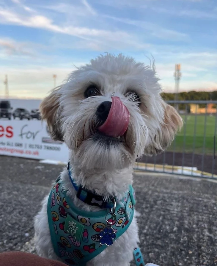 А это лхасский апсо по кличке Бен. Поддерживает он «Бригхауз Таун» – футбольный клуб из города Бригхаус, Западный Йоркшир, Англия. Одна из немногих пород, которых происходит из суровых гор Тибета. Монахи тамошних монастырей верили, что в этих собачек реинкарнируют души умерших.