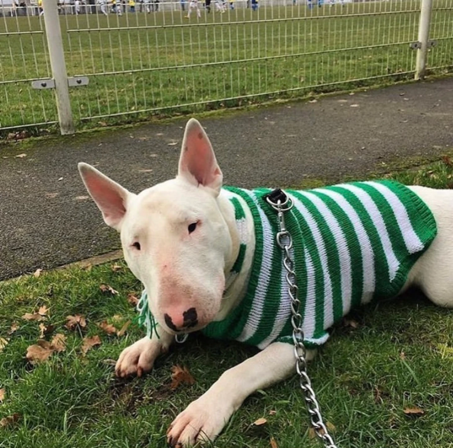 Бультерьер Гаффер поддерживает «Латтерворт Атлетик» – клуб из города Латтерворт, Лестершир, Англия. Бультерьеры – преданные и смелые собаки, самые настоящие гладиаторы собачьего племени.