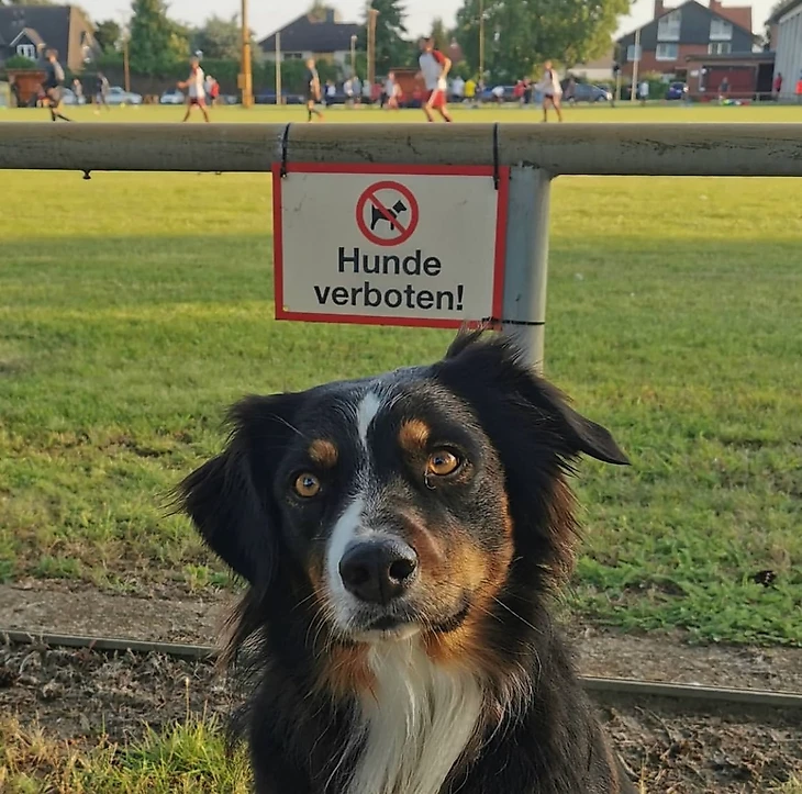 Эта очаровательная австралийская овчарка поддерживает немецкий СГ «Эльбдейх». Собака крайне чувствительна к одиночеству, поэтому во избежание ущерба имущества песика лучше взять с собой на футбол.