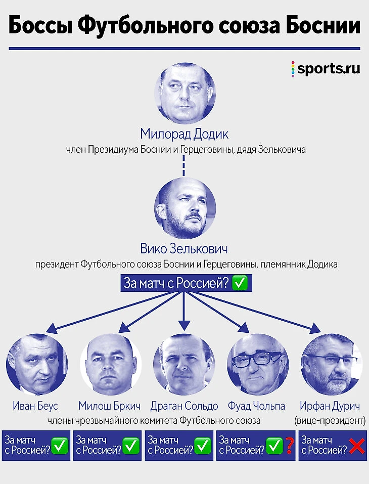 Главе Футбольного союза Боснии припоминают связь с политикой: он племянник одного из руководителей страны, близкого с Путиным